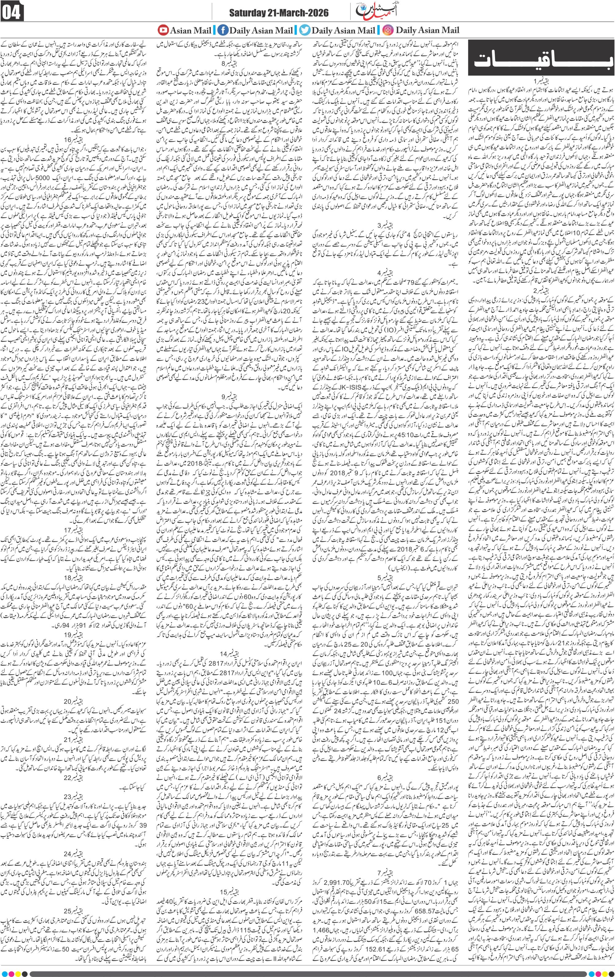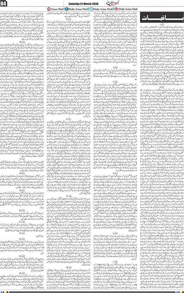 Daily Asian Mail Bilingual Page: 5 Page 1Page 2Page 3Page 4Page 5Page 6Page 7Page 8Page 9 Thumbnails × Daily Asian Mail Bilingual << First << 3 4 5 6 >> Last >> Page 4 Eid MubarakFrontPage 2Page 3Page 4Page 5Page 6Page 7Page 8